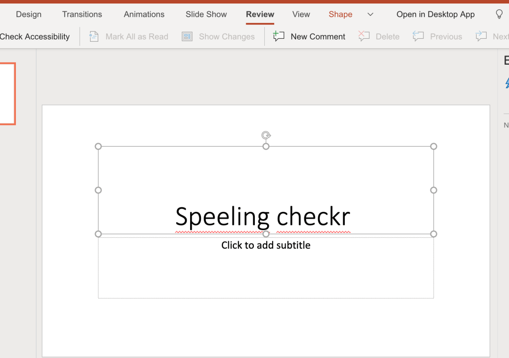 Word Spell Check Do you know how to use Powerpoint’s spell check? Share this: Click to share on X (Opens in new window) X Click to share on Facebook (Opens in new window) Facebook Like Loading...